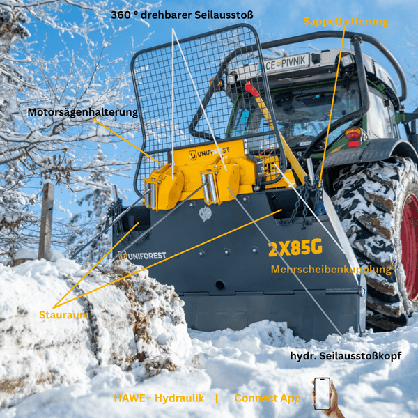 Passend zur Saison ein Highlight unserer Produktreihe der Seilwinden von Uniforest: UNIFOREST 2X85G. Besonderheiten dieser Doppeltrommelwinde sind die große Zugkraft, auch bei oberer Seillage und die kompakte und starke Konstruktion.